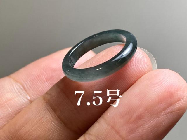 L12-166 ピンキーリング 氷種 高級感 黒翡翠 7.5号 天然グアテマラ産 A貨 本翡翠 くりぬき リング