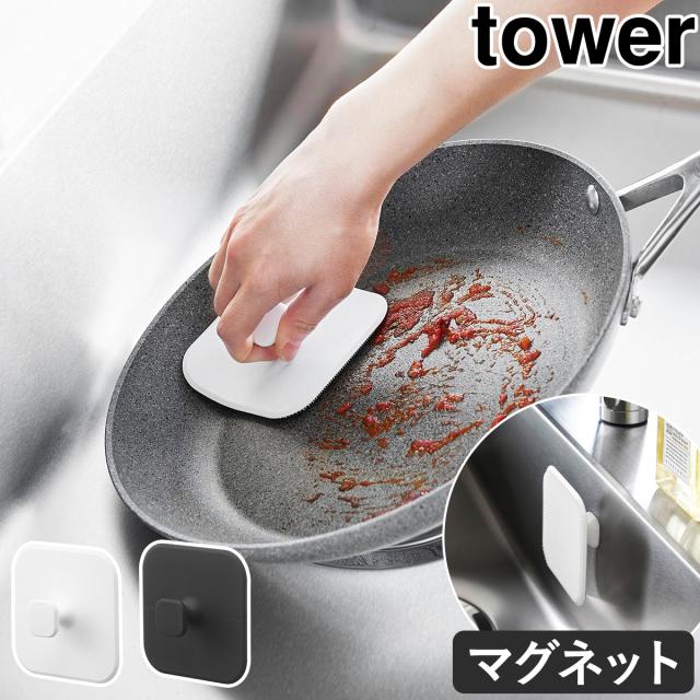 [ マグネットキッチンシリコーンスポンジ タワー ]山崎実業 tower シリコンスポンジ キッチン 食器スポンジ マグネット 磁石 食器洗い 皿洗い 台所 シンク シンク掃除 シリコーン製 浮かせて収納 おしゃれ 公式 ブラック ホワイト 1844 1845