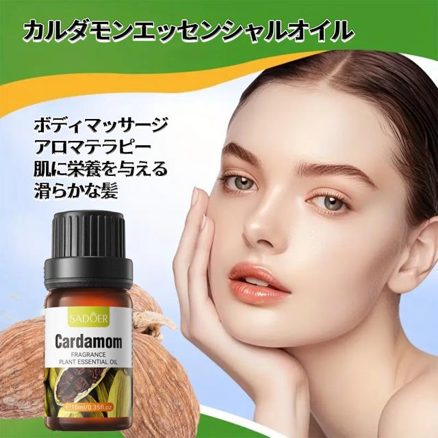 【3本セット】カルダモン精油、アロマ トリートメント オイル、ボディマッサージ、フェイスケア、ヘアケア、デイリーアロマ、マッサージ アロマ オイル、無添加無香料 100%天然成分、マッサージオイル 水溶性、フェムケア オイル (1本10ml/3本入り)