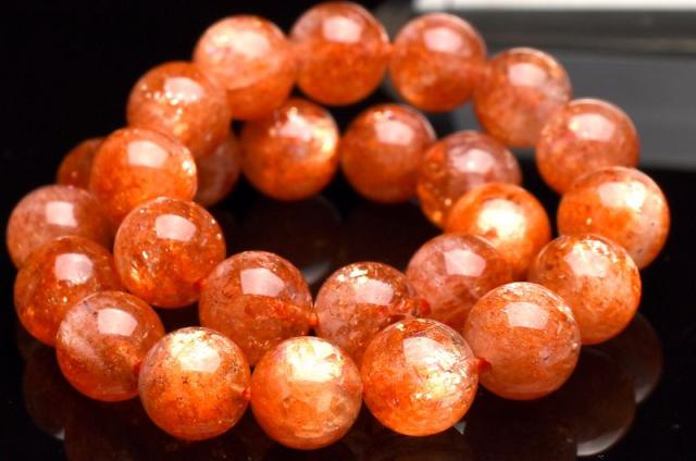 【1点物】上質◇眩い雲母の宝庫 マイカサンストーン 7mm ブレスレット 金運・仕事運【ネコポス送料無料】_U6613
