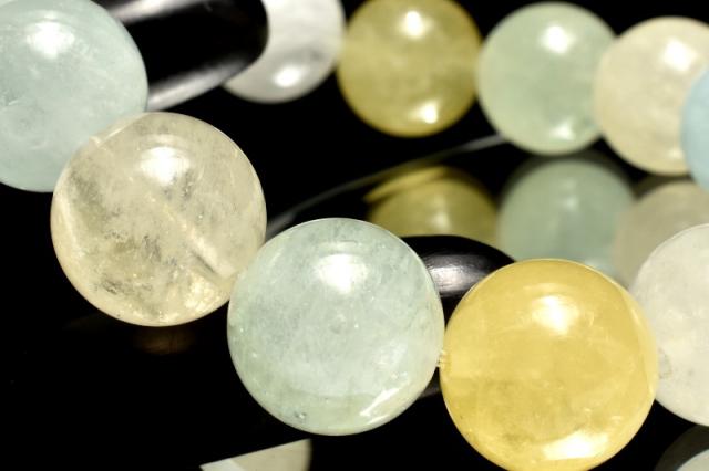 | 特徴・意味 | 透過性のある瑞々しい質感で発色もよくオススメのブレスレットです。 シラーが浮かび上がる珠もあり、幻想的な美しさです ベリルは、緑柱石をあらわすグループの総称。含まれる鉱物によって発色が異なり、それぞれ違った名前を持っています。中でも鉄分を含んで青くなったものはアクアマリン、クロムの作用によって緑色になったものはエメラルド、マンガンを含んでピンク色になったものはモルガナイトと呼ばれています。 ベリルのうち、透明度の高いものは希少価値がとても高く、宝石としても扱われます。古代クレオパトラの時代にも、装飾品として愛用されていたことが伝えられており、人気の高いパワーストーンの一つです。 ヒーリング作用が強く、心を癒して持ち主に富と名誉をもたらすと伝えられる「ベリル」。アクアマリンやエメラルドの他、ピンク色のモルガナイトや黄色のゴールデンベリルなど、さまざまな鉱物が含まれており、それらがすべてベリルと呼ばれています。 |