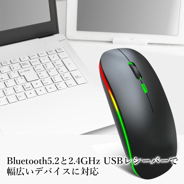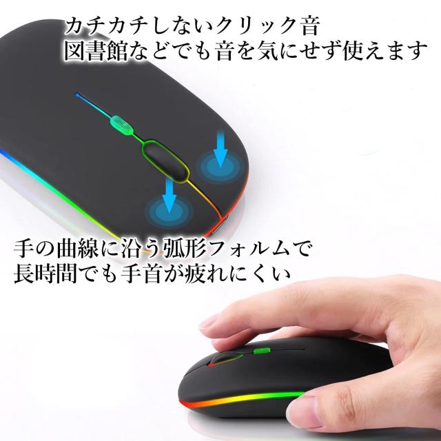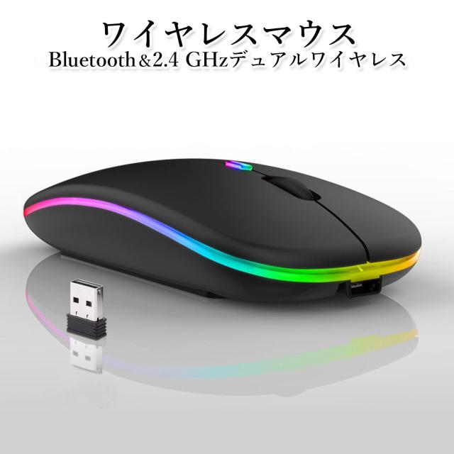 ワイヤレスマウス ブラック Bluetooth/2.4GHz デュアル接続 充電式 RGBライティング搭載 静音クリック 薄型エルゴ設計 (管理S) 送料無料