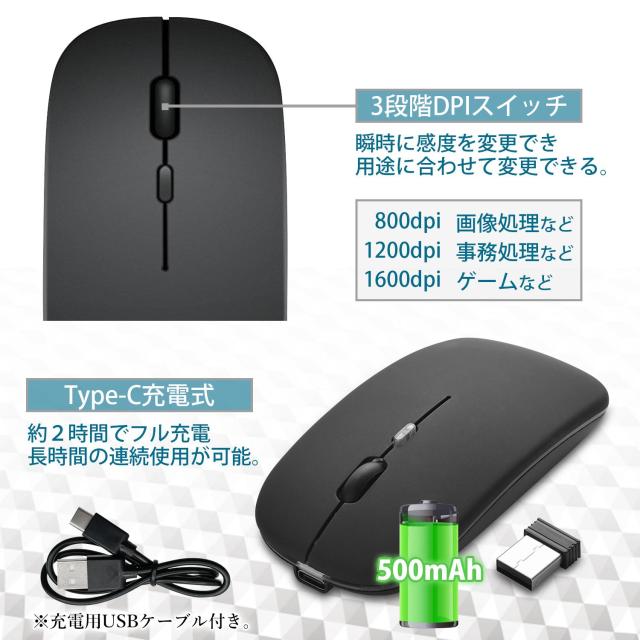 - 初めてBluetoothマウスを購入しました!Bluetooth以外でも使えます!iPadで使用していますが、不具合無く使用できてます!発送もスムーズで良かったです!(ちなみにマウスのサイドは光ります...