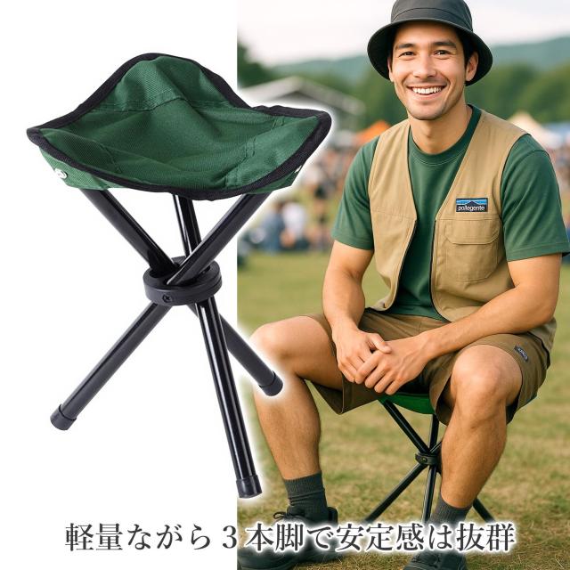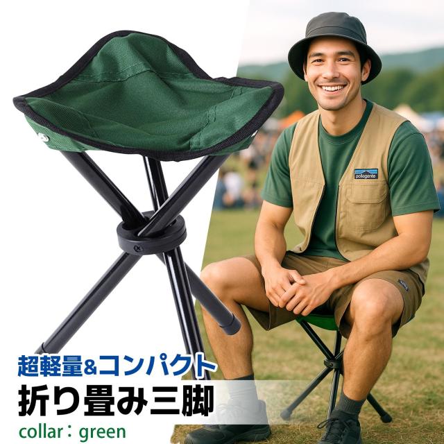 椅子 折りたたみ 三脚 コンパクトチェア グリーン 軽量 ポータブル アウトドア キャンプ 登山 釣り 運動会 (管理S) 送料無料
