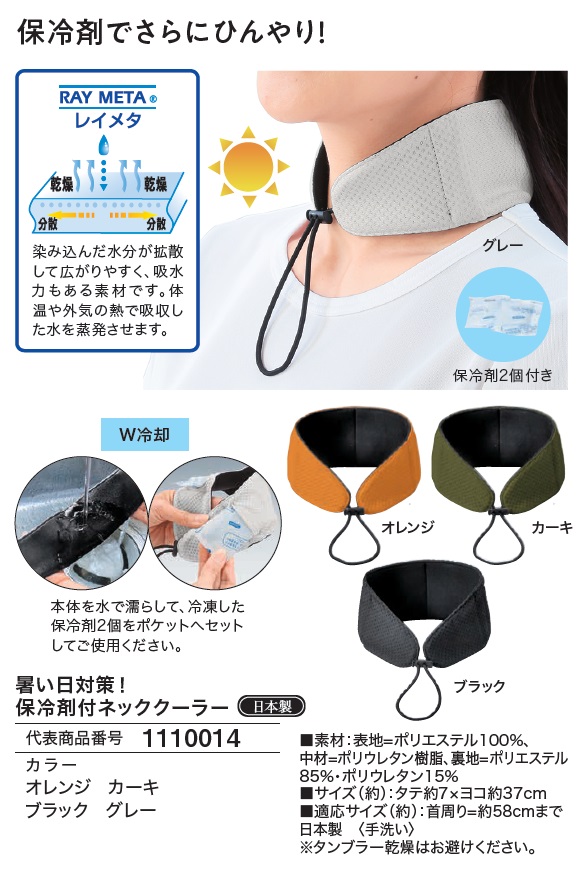 暑い日対策!保冷剤付ネッククーラー 全5色 保冷剤2個付き ネッククーラー 保冷剤 熱中症 対策 グッズ ネッククール ネックカバー グレー オレンジ カーキ ブラック 無地 シンプル 暑さ 対策 冷感 涼感