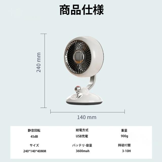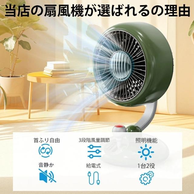 卓上扇風機 USB充電式 扇風機 卓上 アウトドア扇風機 静音 強力送風 キャンプ 風量3段階 LEDライト オフィス おしゃれ
