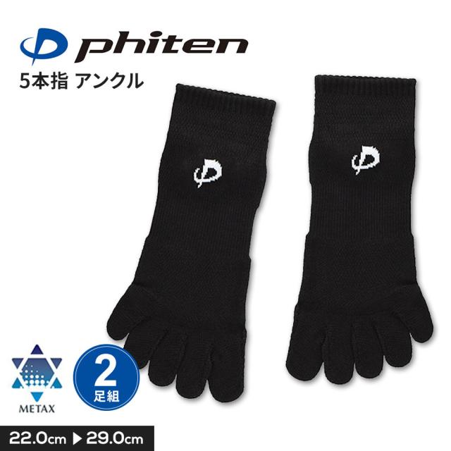 ファイテン スポーツ ソックス ショート丈 メンズ レディース ランニング 靴下 通気性 衝撃吸収 アーチサポート ワイドヒール 運動 スポーツ 試合 練習 トレーニング 男性用 女性用 黒 ブラック スポーツソックス 5本指 アンクル 2足組 AL944670 AL944673 AL944675 phiten
