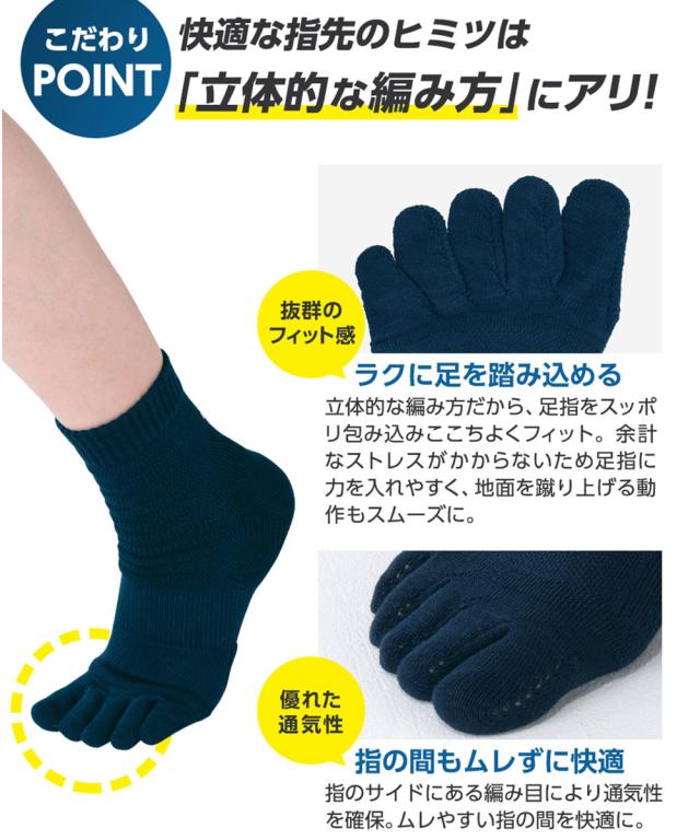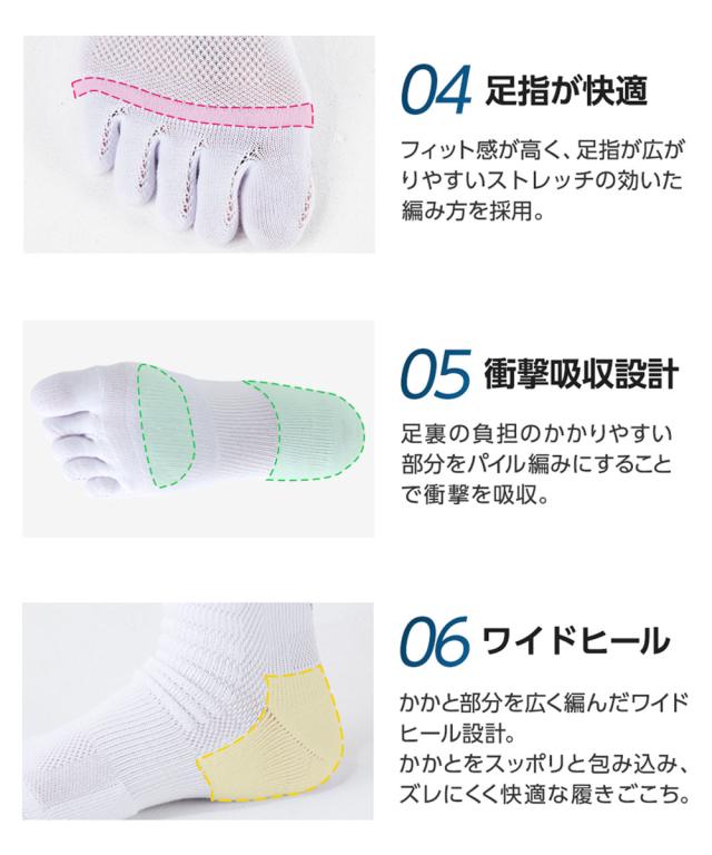 足裏の負担のかかりやすい部分をパイル編みにすることで衝撃を吸収。