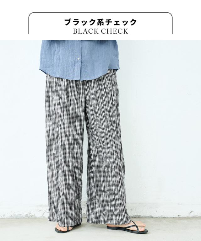 タックドビー ワイドパンツ / 日本製 ワイドパンツ 柄 レディース きれいめ 綿 40代 50代 60代 女性 ファッション ウエストゴム 総柄 柄パンツ チェック 薄手 イージーパンツ 体型カバー 夏 カジュアル 洗える 黒 ブラック