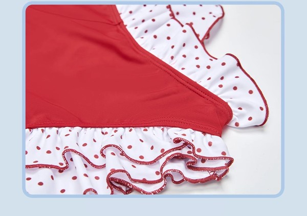 ワンピース水着 レディース 水玉柄 2WAY リボン かわいい フリル 水着 肩出し 着痩せ 水着 ノースリーブ 学生 小柄 コスプレ 衣装 撮影 写真用 映える 温泉 プール ビーチ レッド M L XL df809m4m4x7 df809m4