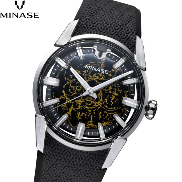 ミナセ MINASE 腕時計 メンズ 自動巻き JAPAN ART COLLECTION URUSHI 漆 〜絞漆〜 DIVIDO こがねの揺らぎ ラバーモデル VM14-RBKKA3-SSD