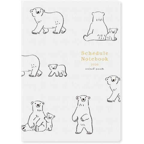 リュリュ 2026年 ダイアリー 手帳 A5サイズ アニマルパレード シロクマ マンスリー 月曜始まり 送料無料