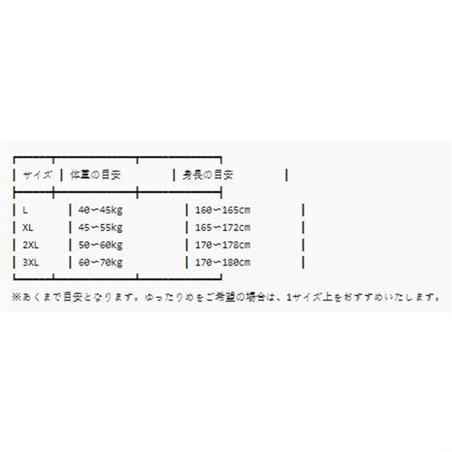 ※がっちり体型なら1から2サイズ上がおすすめです。