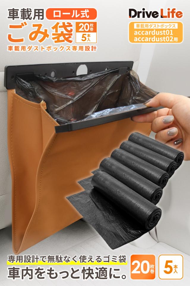 車用ゴミ箱 ゴミ袋 ロール式 車用ゴミ袋 車載ごみ袋 車内 ごみ袋 ずれにくい ダストボックス 収納ケース 収納ボックス コンパクト 省スペース カー用品 小物入れ アウトドア 大容量 簡単設置 20枚巻×5本セット ドライブライフ