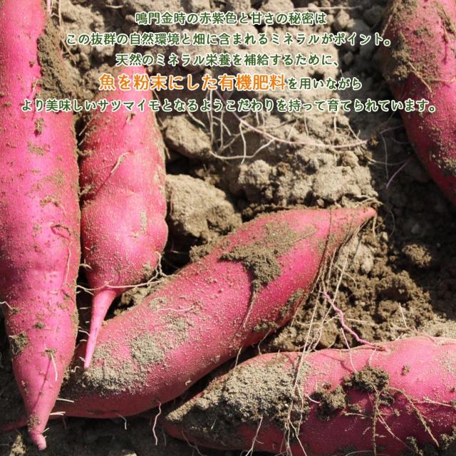 吉岡ファームさんの鳴門金時の鮮やかな赤紫色と甘さは、抜群の自然環境とミネラルのおかげなんです。化学肥料で栄養を一気に与えるのではなく、魚を粉末にした有機肥料を用いることで、天然のミネラル栄養をじっくりと補給できるんです。土壌作りからこだわり、安心・安全はもちろん甘さや食感を第一に考え、より美味しいさつまいもとなるようこだわりをもって育てられています。