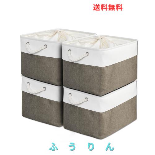MiyabiLife 収納ボックス 収納バスケット 収納かご 4個セット 幅40×奥行30×高さ24cm 巾着式ふた付き 折りたたみ 大容量 収納ケース お