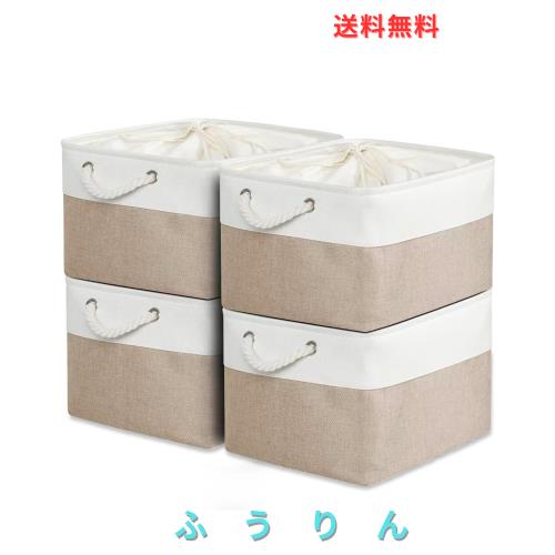 MiyabiLife 収納ボックス 収納バスケット 収納かご 4個セット 幅40×奥行30×高さ24cm 巾着式ふた付き 折りたたみ 大容量 収納ケース お
