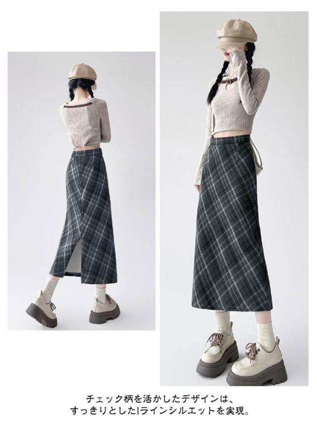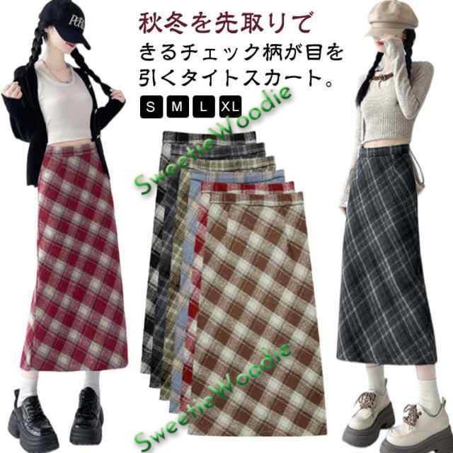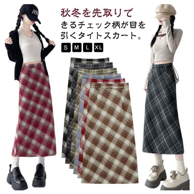 スカート 大人 通勤 厚手 レディース ラシャ チェック柄 秋冬 体型カバー タイト ロングスカート ロング 大きいサイズ 50代 バックスリット タイトスカート 通学 チェックスカート カジュアル きれいめ ハイウエスト 40代 赤 20代 スカート 茶 ベージュ