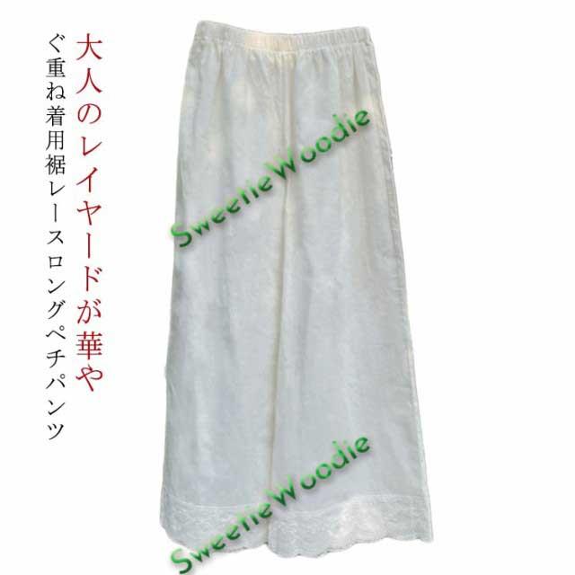 ペチパンツ ロング丈 ボトムス 可愛い ウエストゴム ワイドパンツ 薄手 裾レース 透けない かわいい ルームパンツ レディース パンツ インナーパンツ 白 重ね着 大きいサイズ ホワイト 透け防止 ロングパンツ 春夏 秋冬 ペチコート 女性