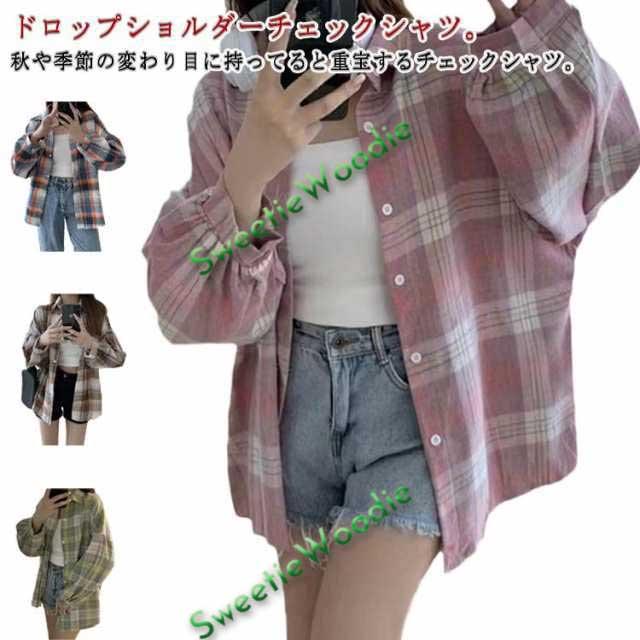 レディース 秋 シャツ チェック柄 オーバーサイズ ロングシャツ ネルシャツ 大きいサイズ 韓国 長袖 チェックシャツ 羽織り アウター シャツジャケット ブラウス ゆったり ドロップショルダー カジュアル 重ね着 上着 春 秋 秋服