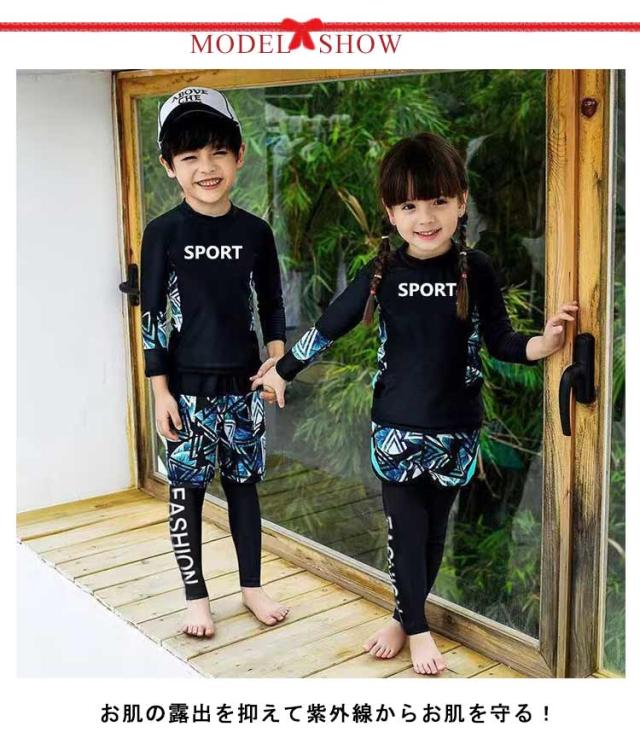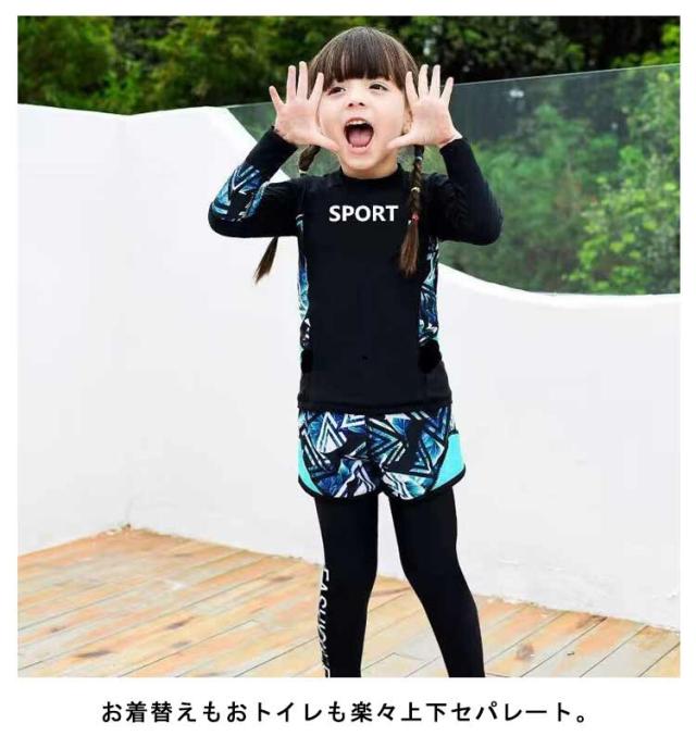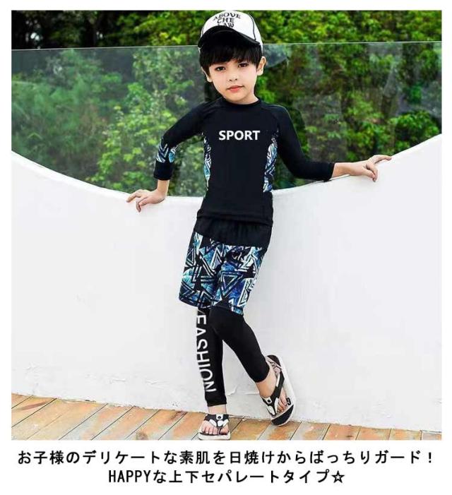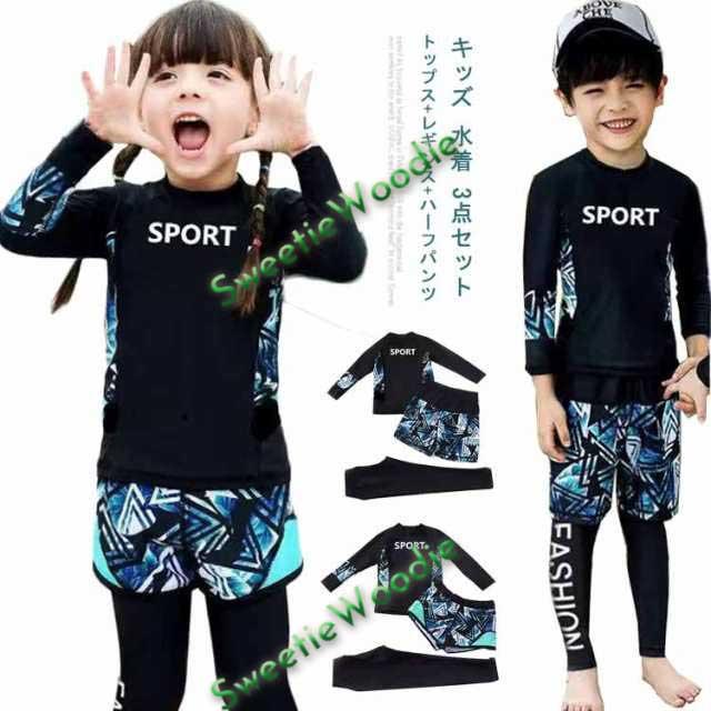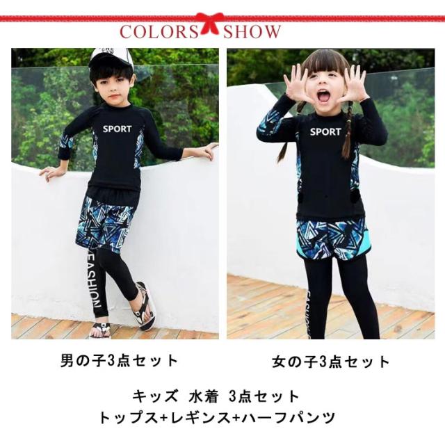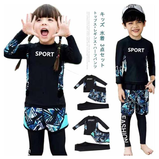 ジュニア 長袖 子供 セパレート 水着 3点セット キッズ ボーイズ 女の子 水着 トランクス ラッシュガード レギンス フィットネス 水着 ガールズ 男の子 スイムウェア 海水浴 セパレート 日焼け防止 こども UV対策