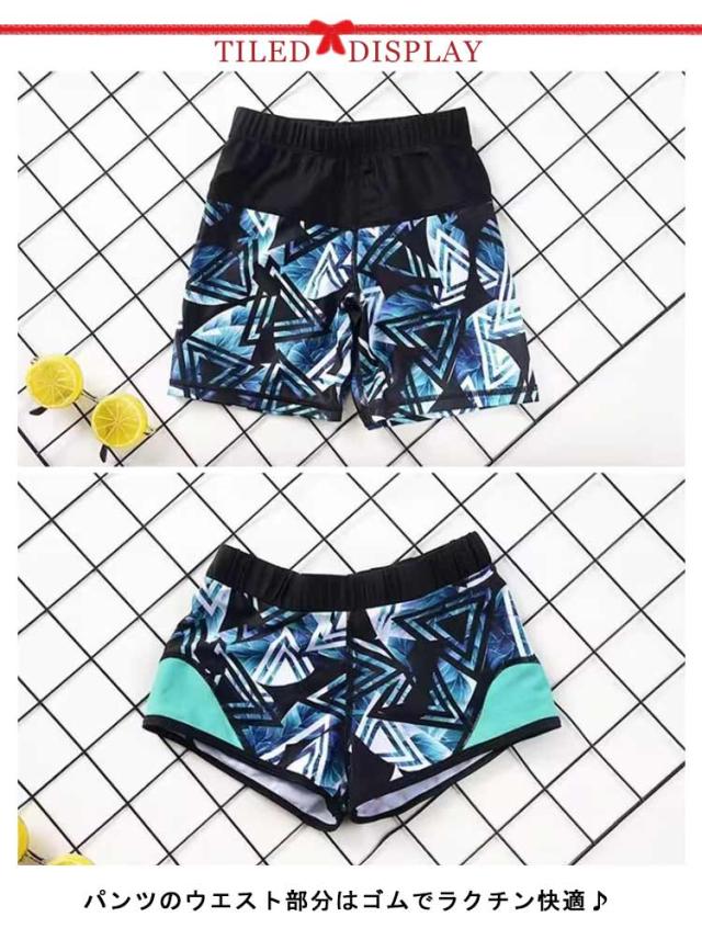| キッズ 水着 3点セット トップス+レギンス+ハーフパンツ お肌の露出を抑えて紫外線からお肌を守る! お子様のデリケートな素肌を日焼けからばっちりガード! HAPPYな上下セパレートタイプ☆ パンツのウエスト部分はゴムでラクチン快適♪ お着替えもおトイレも楽々上下セパレート。 海やプールはもちろん、保育園や幼稚園の水遊びにも♪ | |