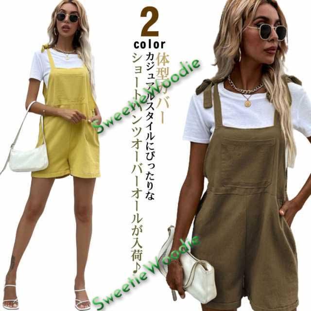オーバーオール レディース ショートパンツ サロペット ジャンプスーツ 綿 無地 リネン ノースリーブ ポケット付き 麻 袖なし ボトムス ゆったり カジュアル 体型カバー オールインワン