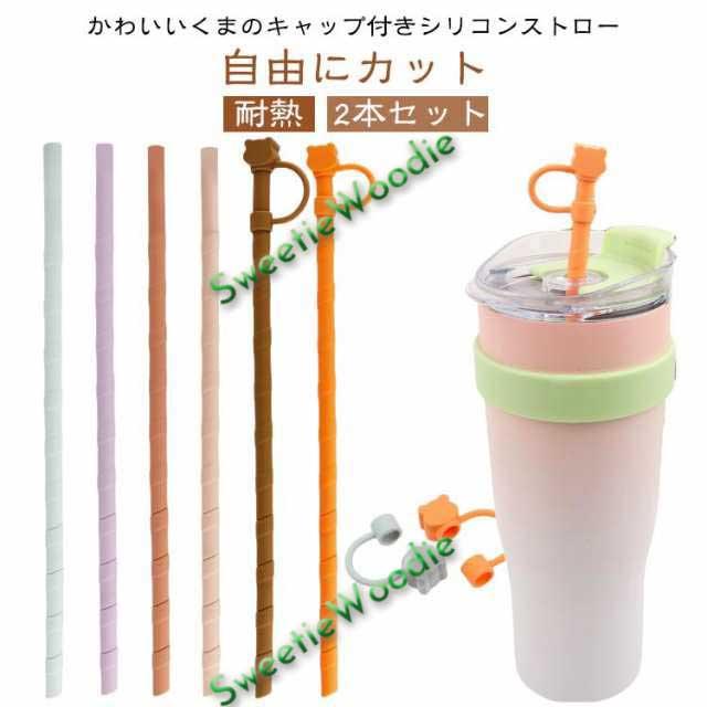 キャップ付き ストロー シリコンストロー 自由にカット シリコン 携帯便利ストロー 【2本セット】 キャラクター 水筒 防塵 ポータブル くま型ストロー かわいいくまストローヘッド 耐高温 【2本セット】 プラスティックなし BPAなし 食洗機OK 洗える