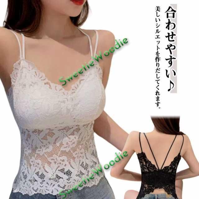 キャミソール タンクトップ レース インナー 総レース カップ付き 薄手 花柄 春 胸元カバー キャミソール レディース 夏 ブラ インナー 見せブラ 下着 トップス パッド付き キャミソール セクシー 韓国 スリム 透け感 ブラック ホワイト 快適