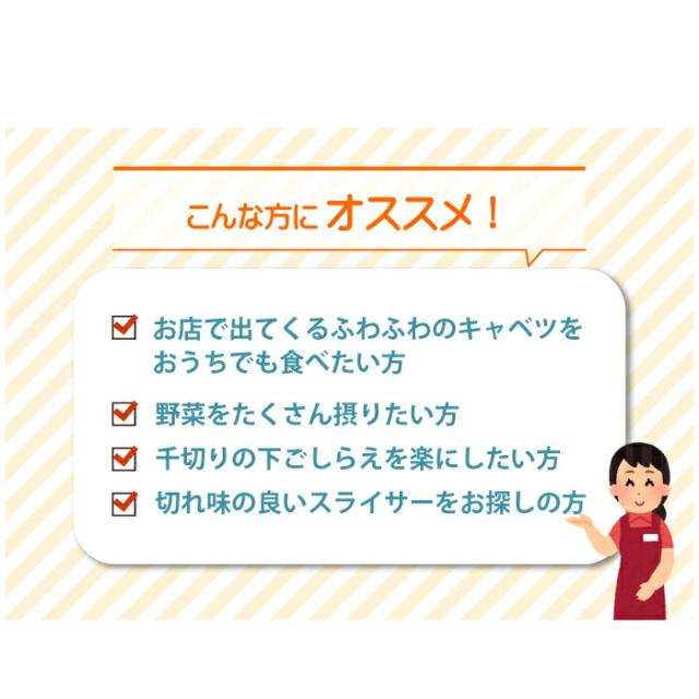 ・包丁で刻むより早く均一にキャベツがスライスできます。