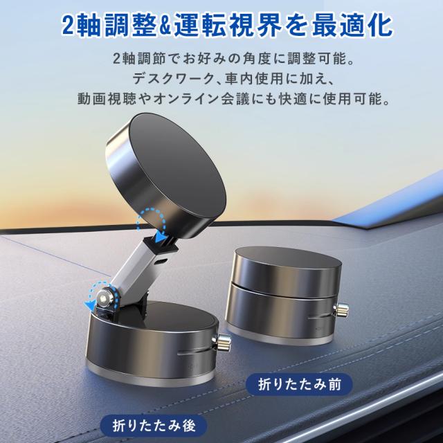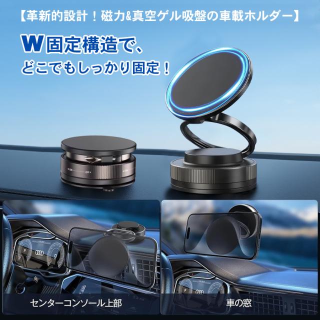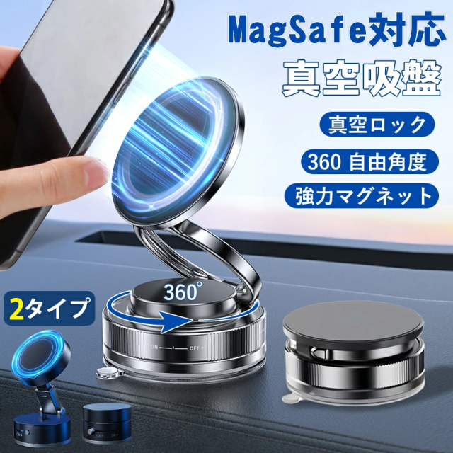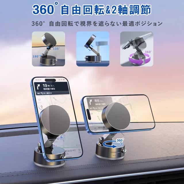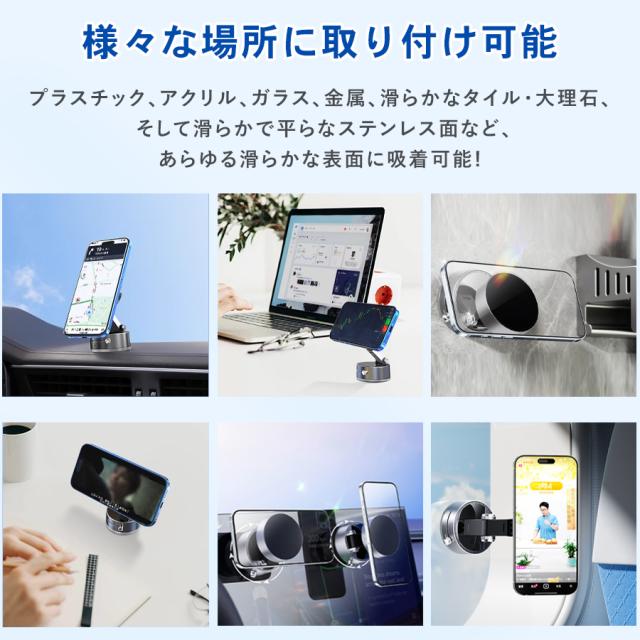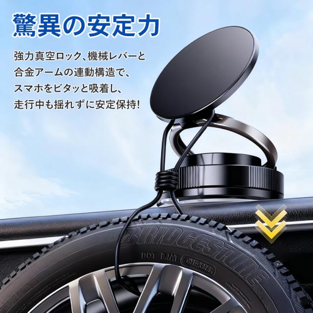 【クーポン利用で1380円】スマホホルダー 車載用 マグネット 真空吸盤 超強磁力 スマホスタンド Magsafe 車載 マグセーフ スマホ車載ホルダー 携帯スタンド 車用品 片手操作 充電不要 全機種対応