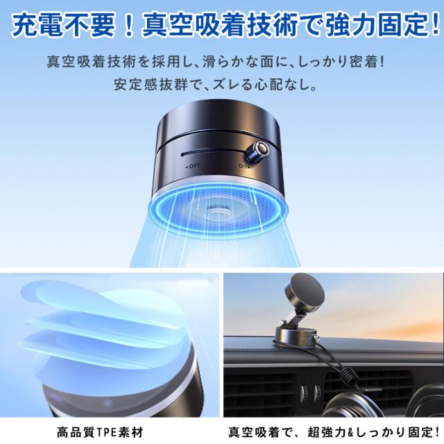 - 真空ナノゲル吸盤で強力密着: 三層構造のナノゲル吸盤がダッシュボードの細かな凹凸にも密着。汚れても水洗いすれば繰り返し使用でき、-7℃〜90℃の幅広い温度帯に対応します。