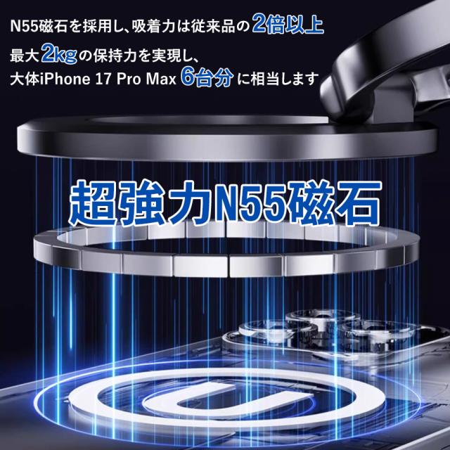 - 瞬間ピタッ!20個の超強力マグネット: N52クラスのネオジム磁石を20個内蔵。スマホを近づけた瞬間、約0.3秒でガッチリ吸着し、約1.5kgまでしっかりホールドします。
