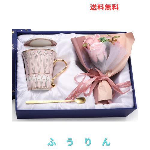 ?職人による手作りの優れた品質?コーヒカップには良質でエコ、無鉛・無毒の陶磁を採用。オシャレなパッケージで、内部はシルク張り。贈答品用なので、さらに包装する必要はありません。300?マグカップ(ピンク)×1,高級ソープフラワー(ピンク)×1,カップ専用ふた×1、スプーン×1、黒と金のメッセージカード入り(メッセージが書き込めます)