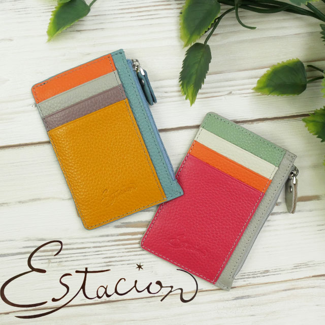 メール便送料無料 コインケース 財布 レディース SS 春夏 新作 夏新作 秋新作 人気 流行 定番 2025 エスタシオン Estacion XH-1004 CASE 小銭入れ 本革 ミニポーチ 牛革 カードポケット付き カラフル コンパクト 水色 灰色