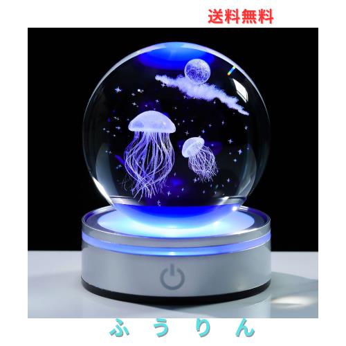 ?【3Dレーザー彫りで 水晶玉】?おしゃれな「3Dクラゲ アクアリウム」 がグレードの3Dクリスタルに内蔵しています、レーザー彫刻技術を使用して、決して色あせない。LEDライトでクリスタルの中の3Dアートが輝き、幻想的な画像で心に癒しを与えてくれます。色は明るい暖かく、風合いは自然であり。ます女性への誕生日完全プレゼントにおすすめ!!!!
