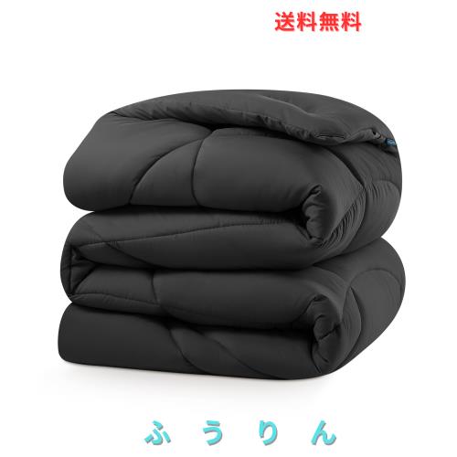 掛け布団 シングル 肌掛け布団 春夏秋です 150x210cm 洗える 暖かい 抗菌防臭 軽量 防ダニ 通気性 オールシーズン 羽毛布団 ブラック -