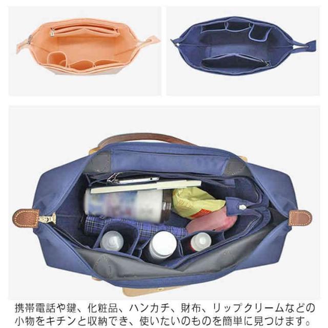 | バッグの中をスッキリ整頓、ロンシャントートバッにピッタリのバッグインバッグ!3サイズと2タイプがあり、ご自由に選べます。 バッグインバッグを利用すれば、バッグの形が崩れにくくなり、格好よく使えます。また、バッグの裏地の傷つきを防止し、バッグの使用寿命も長くなります。 バッグを替えても、このインナーごと移していただくことで、小物も忘れることなく持ち運びができます。 携帯電話や鍵、化粧品、ハンカチ、財布、リップクリームなどの小物をキチンと収納でき、使いたいのものを簡単に見つけます。 色が目立たなくレディースにはもちろん、メンズにもおすすめできる大きめのバッグインバッグです。 | |