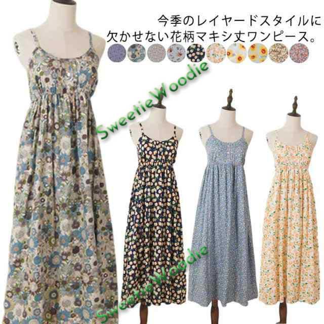 キャミソールワンピース 花柄ワンピース 夏 リゾートワンピース マキシワンピース ロングワンピース 花柄 プリントワンピース マキシ丈 ロング丈 コットン フレアワンピース ノースリーブ Aライン おしゃれ かわいい 送料無料