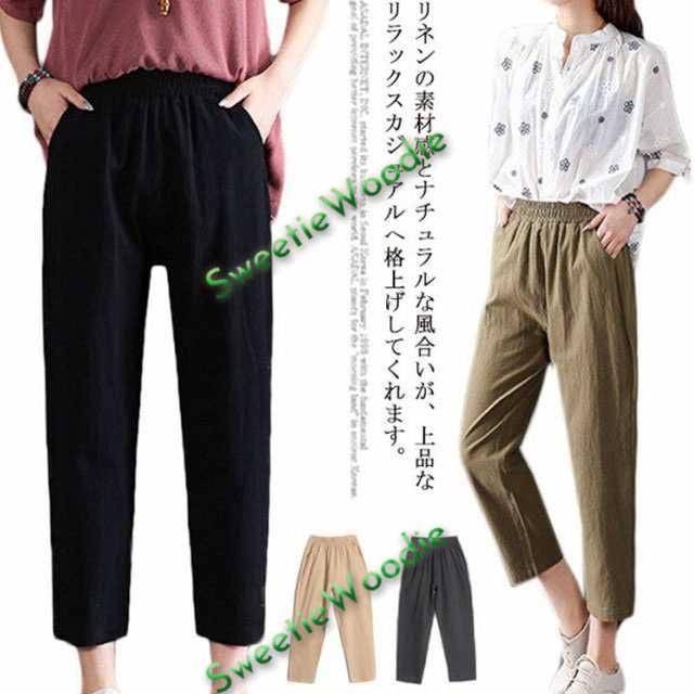 送料無料 パンツ M?4XL ゆったりパンツ リネン100% レディース ガウチョパンツ リネンパンツ 九分丈 ヴィンテージリネン ナチュラル 体型カバー ボトムス 大きいサイズ オリジナル 麻100% 春 秋 冬 エコロコ 母の日
