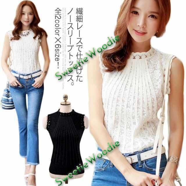 全2color×6size!レーストップス ハイネック トップス ブラウス ノースリーブ レースブラウス ノースリーブブラウス 総レース 夏物 夏服 おしゃれ 女性 白 黒 大きサイズ送料無料