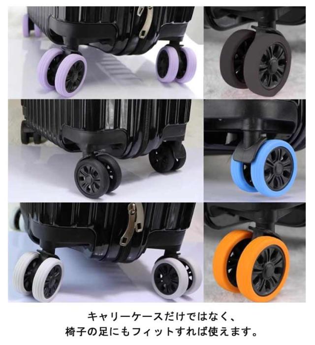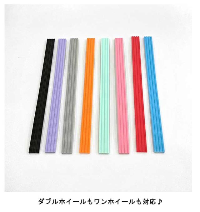 | ダブルホイールもワンホイールも対応♪ 貼るだけでキャスターをキズや汚れから守る粘着テープ式キャスターカバー。 シリコン製のホイールカバーは衝撃吸収で、ゴロゴロ感が緩和され、運びやすくなります。 ノイズを軽減し、悪路も今まで以上に滑らかになり、履かせるだけで汚れをブロックして、床の汚れや傷防止! キャリーケースだけではなく、椅子の足にもフィットすれば使えます。 | |