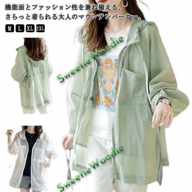薄手 マウンテンパーカー フード付き パーカー 日焼け対策 UV対策 日よけ対策 ライトアウター ブルゾン マウンテン パーカー アウター レディース パーカー ジャケット ミリタリージャケット アウトドア 体型カバー グリーン ホワイト