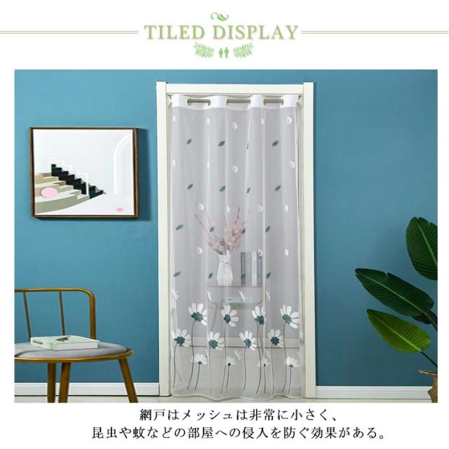 メッシュ ドア用網戸 玄関網戸 突っ張り棒式 ドアカーテン 幅100/90/80cm のれん 暖簾 蚊帳カーテン 風通し ロング丈 伸縮 脱衣所 刺? 目隠し 花柄 賃貸 暑さ対策 暖簾 虫よけ 北欧 蚊取り