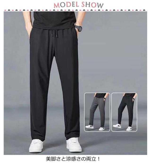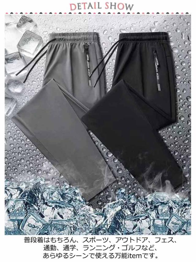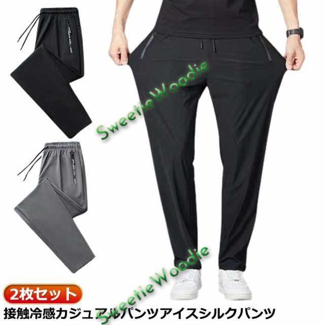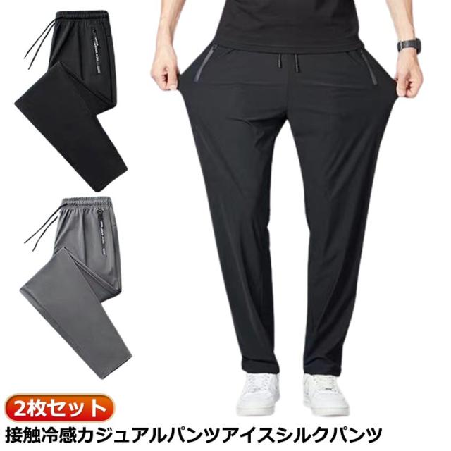 2枚セット アイスシルク 接触冷感 パンツ メンズ 冷感パンツ ひんやり 涼しい ロングパンツ カジュアル 薄手 ゴルフパンツ ストレッチ 伸縮 美脚 長ズボン 通気 速乾 スポーツ イージーパンツ 無地 大きいサイズ ストレート ゆったり クール感 黒 ブラック グレー 送料無料