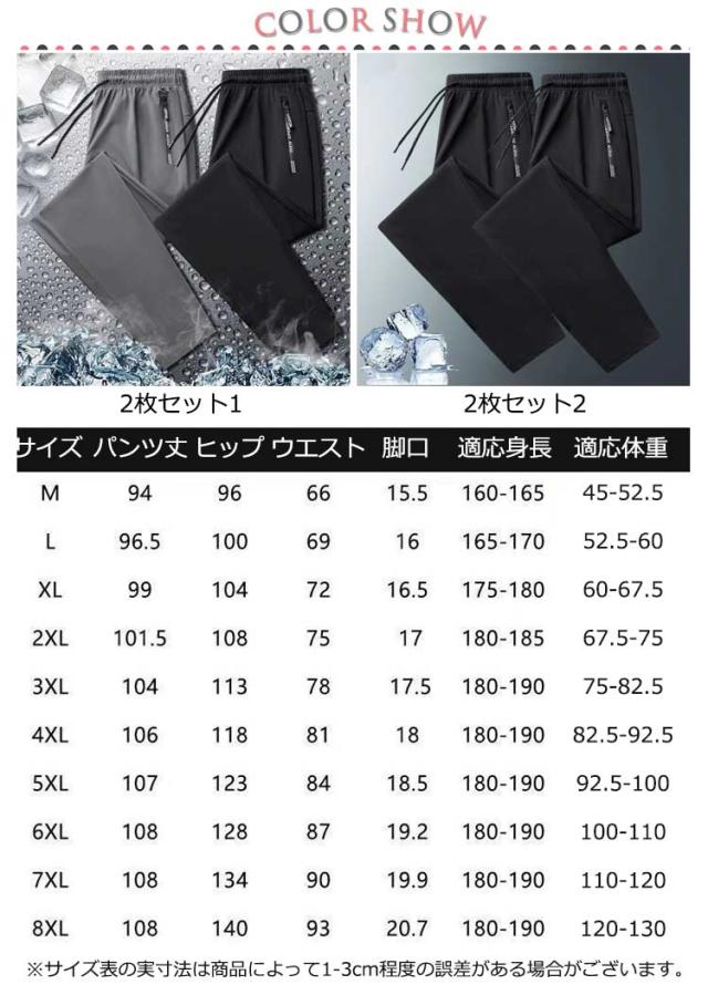 | 2枚セット 接触冷感カジュアルパンツアイスシルクパンツ 美脚さと涼感さの両立! 通気性が良い生地を採用しさらっとした着心地。 伸縮性がある素材を使用した、動きやすく、窮屈感を解消 ウエスト部分はゴムと紐仕様なのでサイズ調節もラクラク。 普段着はもちろん、スポーツ、アウトドア、フェス、通勤、通学、ランニング・ゴルフなど、 あらゆるシーンで使える万能itemです。 | |