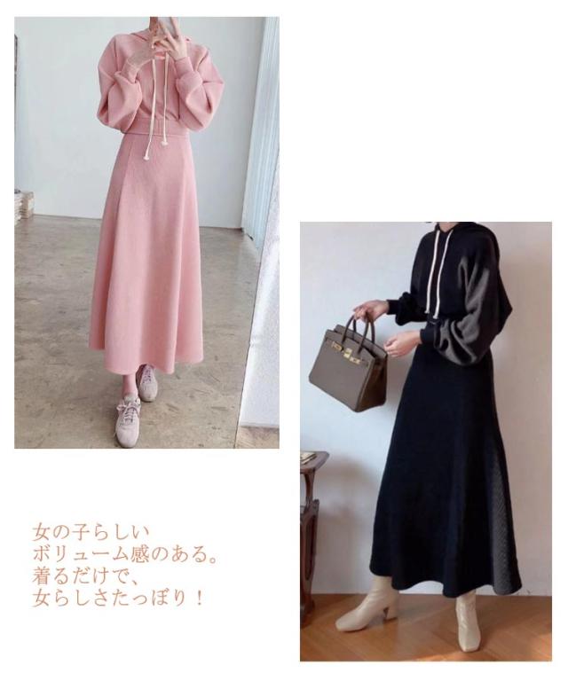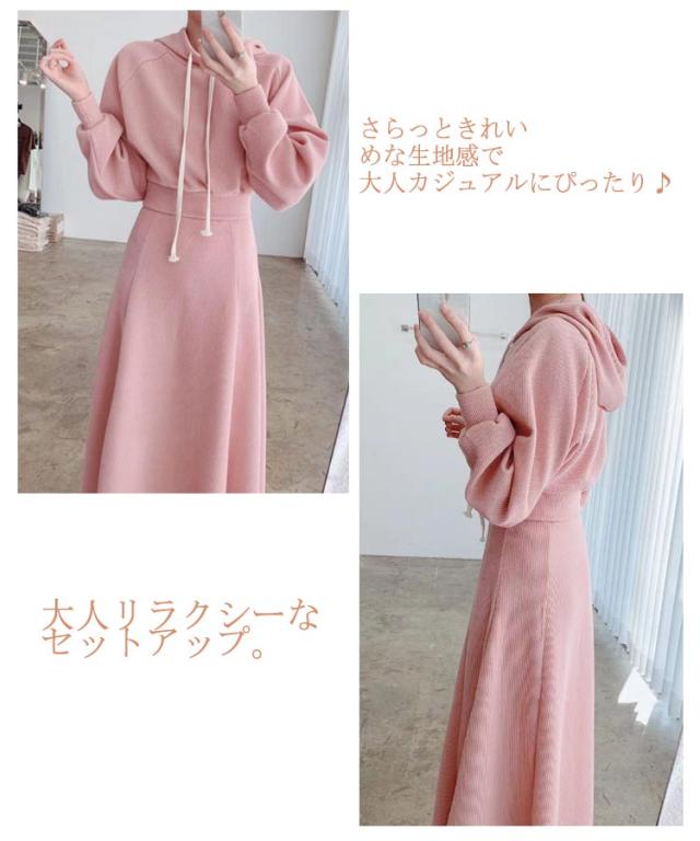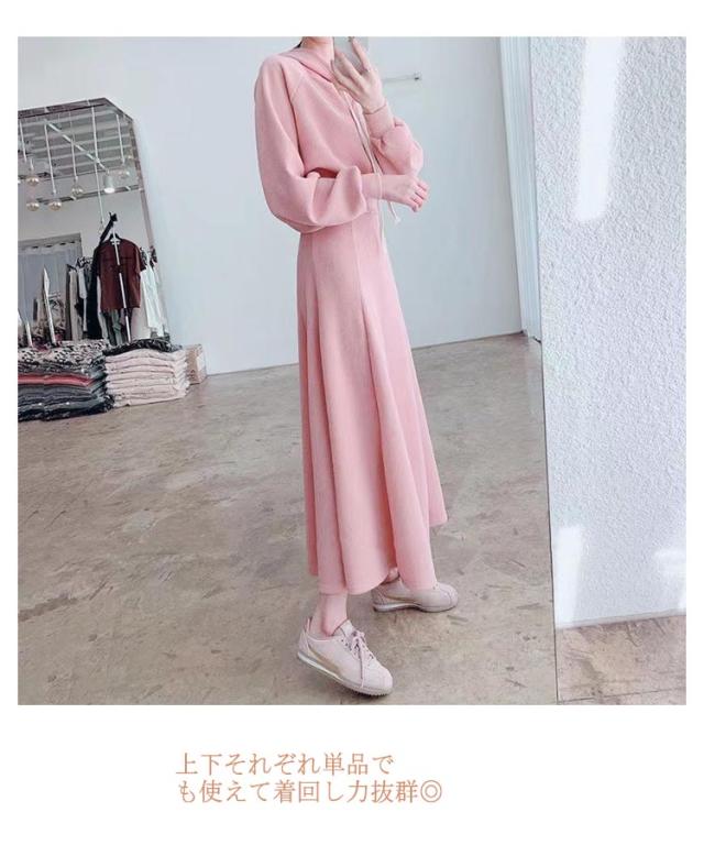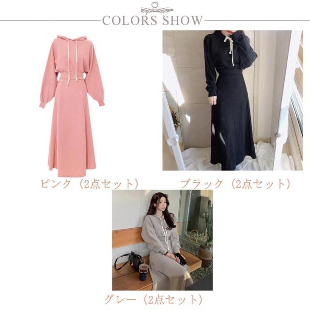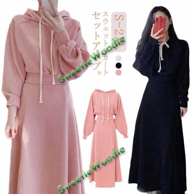 スウェット セットアップ レディース 春 秋 長袖 フード付き パーカー ロングスカート 上下セット プルオーバー パーカー Aラインスカート 2点セット 秋服 秋物 冬 春服 きれいめ 着痩せ 大きいサイズ 大人可愛い 送料無料 ピンク グレー ブラック 20代 30代 40代
