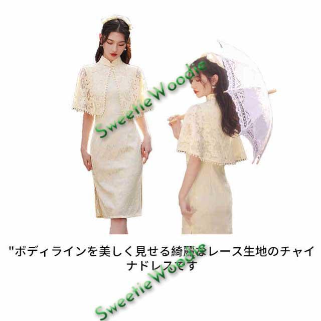 2点セット チャイナ ワンピース チャイナドレス ロング ストール マント カジュアル レースセクシーチャイナ服 刺繍 コスプレ セクシー 大きいサイズ 半袖 チャイナ服 ロリ 高級 セクシーチャイナ パーティー 演奏会 発表会 結婚式 マキシ丈 中華服 仙女 民族風