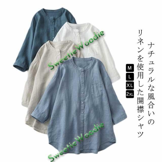 シャツ 綿麻 春秋 ブラウス バンドカラー 麻 レディース リネンシャツ 麻 前開き 七分袖 リネン 7分袖 リネンシャツ レディース ナチュラル ゆったり チュニック 薄手 涼しい カジュアル おしゃれ リネン トップス 春 夏 秋 送料無料