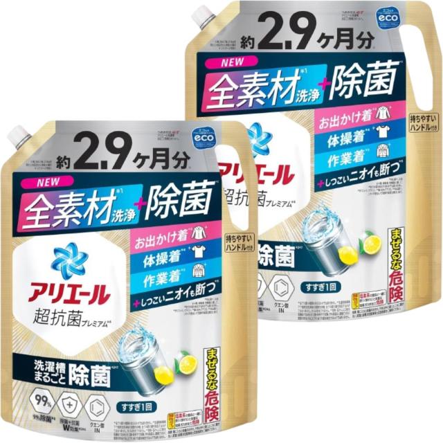 アリエール 洗濯洗剤 液体 除菌プラス 2.9ヵ月分 詰め替え 大容量 2,210g×2袋 洗濯槽まるごと除菌 メガジャンボ 抗菌 特大 超抗菌プレミアム